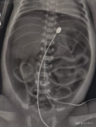 据了解,这名早产儿胎龄为30周+6天,出生后即转入新生儿重症监护室(NICU)接受监护。出生第3天,患儿出现腹部异常膨隆,经床旁X光检查提示腹腔内大量游离气体,高度怀疑消化道穿孔。该院小儿外科执行主任聂梅兰团队紧急会诊,确诊为胃破裂。