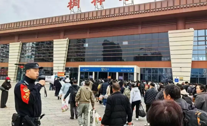 桐梓站派出所民警耐心引导务工旅客有序进站