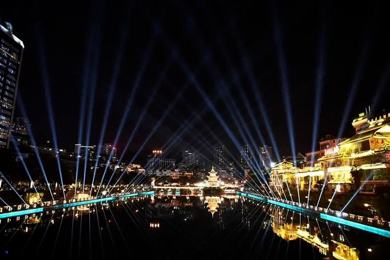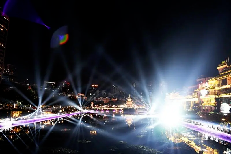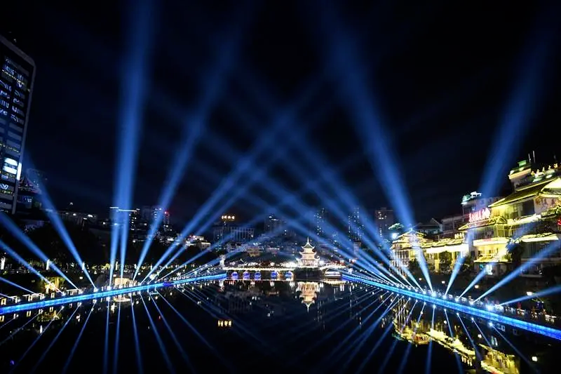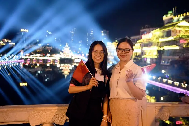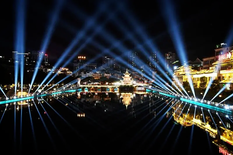 为庆祝中华人民共和国成立72周年,10月1日至10月3日,贵阳市南明区以“礼赞新中国”“筑梦新黔景”“奋斗新时代”为主题,依托甲秀楼景点和南明河美景,引入高科技光影技术,让市民及游客在璀璨的灯光秀中感受节日的浓厚氛围。