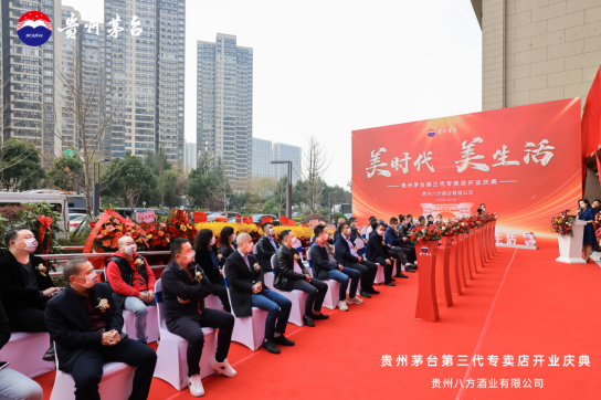 贵州茅台法律合规部西南片区主管罗维、贵州茅台酒销售有限公司贵州省区区域负责人李方、贵州食品工程职业学院院长、中国知名白酒专家吴天祥,贵州八方酒业有限公司董事长罗义军等领导嘉宾出席开业庆典。