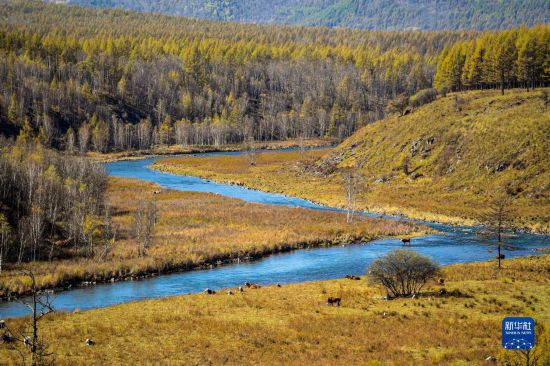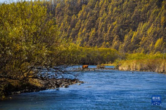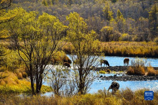 9月21日 牛群在阿尔山国家森林公园内的河岸边觅食
