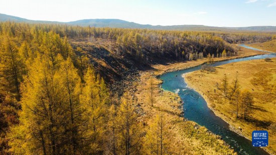 这是9月21日拍摄的阿尔山国家森林公园中不冻河的自然风光(无人机照片)