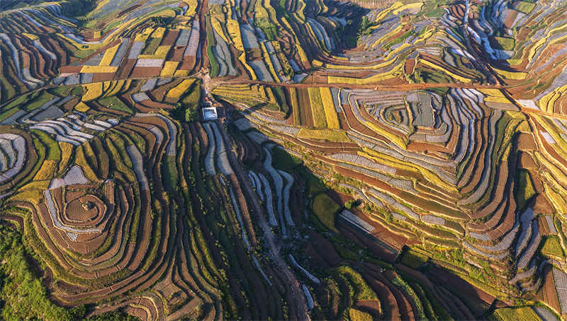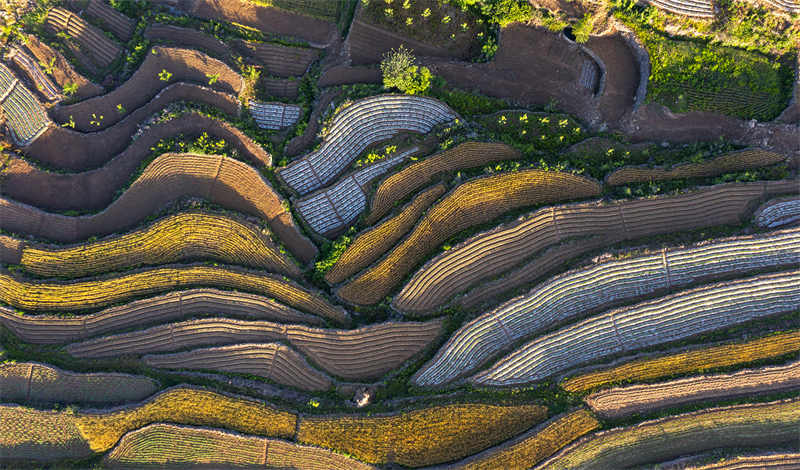 山东日照五莲县,五万亩多彩梯田镶嵌在大地上。 王军摄