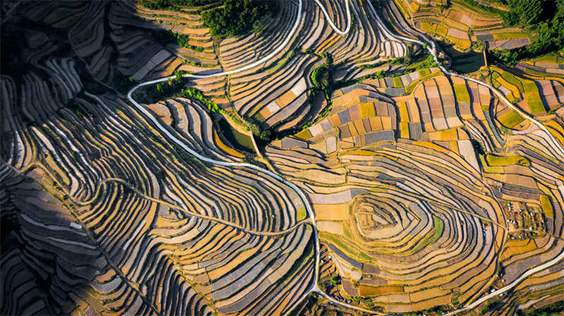 层层叠叠,阡陌交错,青山环抱着梯田。 王军摄