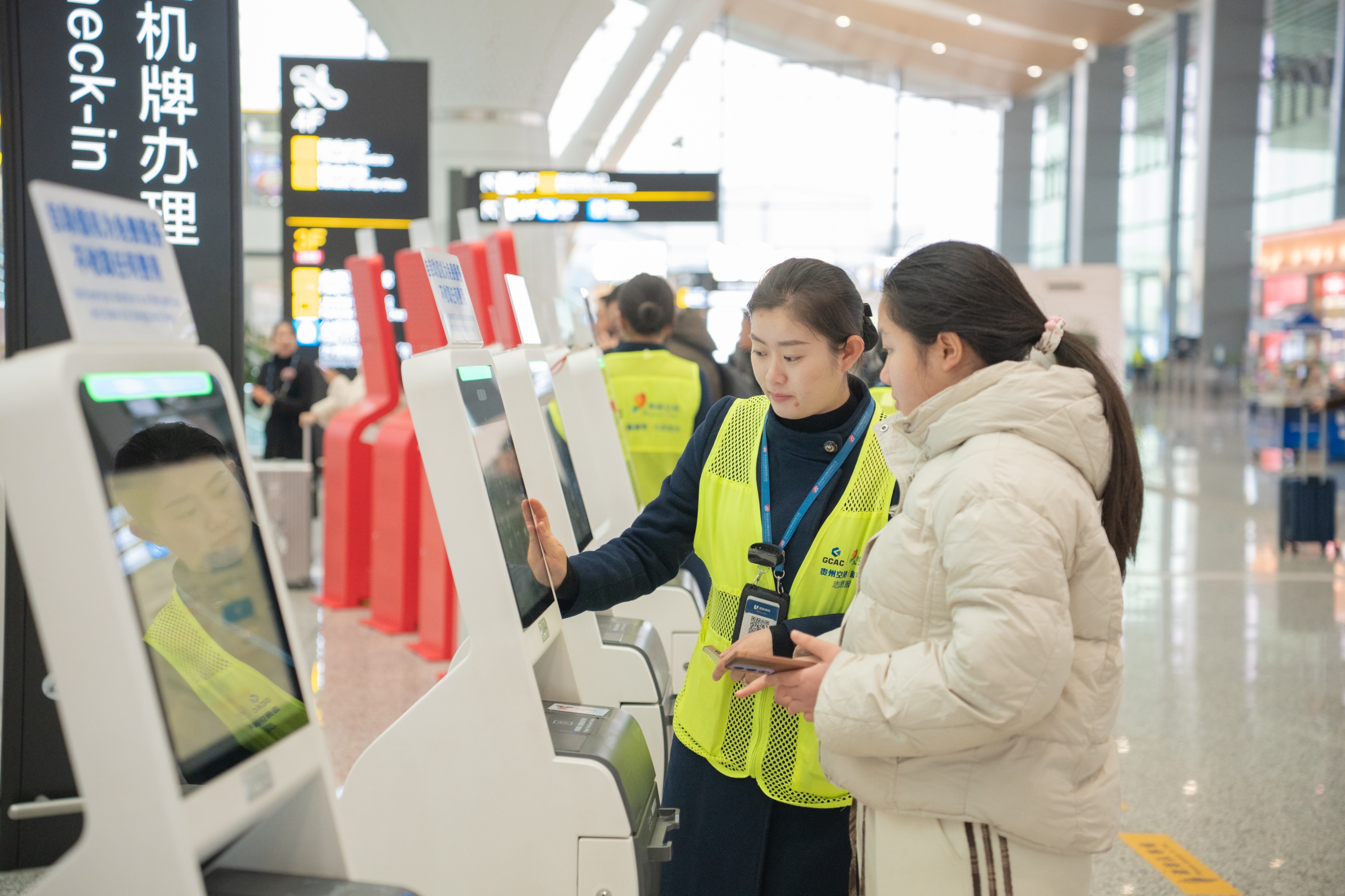 升级服务,多维度优化旅客出行体验。在航站楼出入口、扶梯口等区域铺设防滑垫、设置警示标识,做好航站楼周边道路防滑处理;针对天气可能导致的旅客晚到情况,开设“急客”安检与值机通道;在待检区设立“安检问询处”、于登机口等关键区域增派人员,提供过检咨询、退改签咨询、行程规划指引、行李转运等服务;提前储备热饮与航延餐食,实时调控航站楼内温度,精心策划送温暖活动,以细致服务驱散冬日寒意,守护旅客平安顺畅出行。
