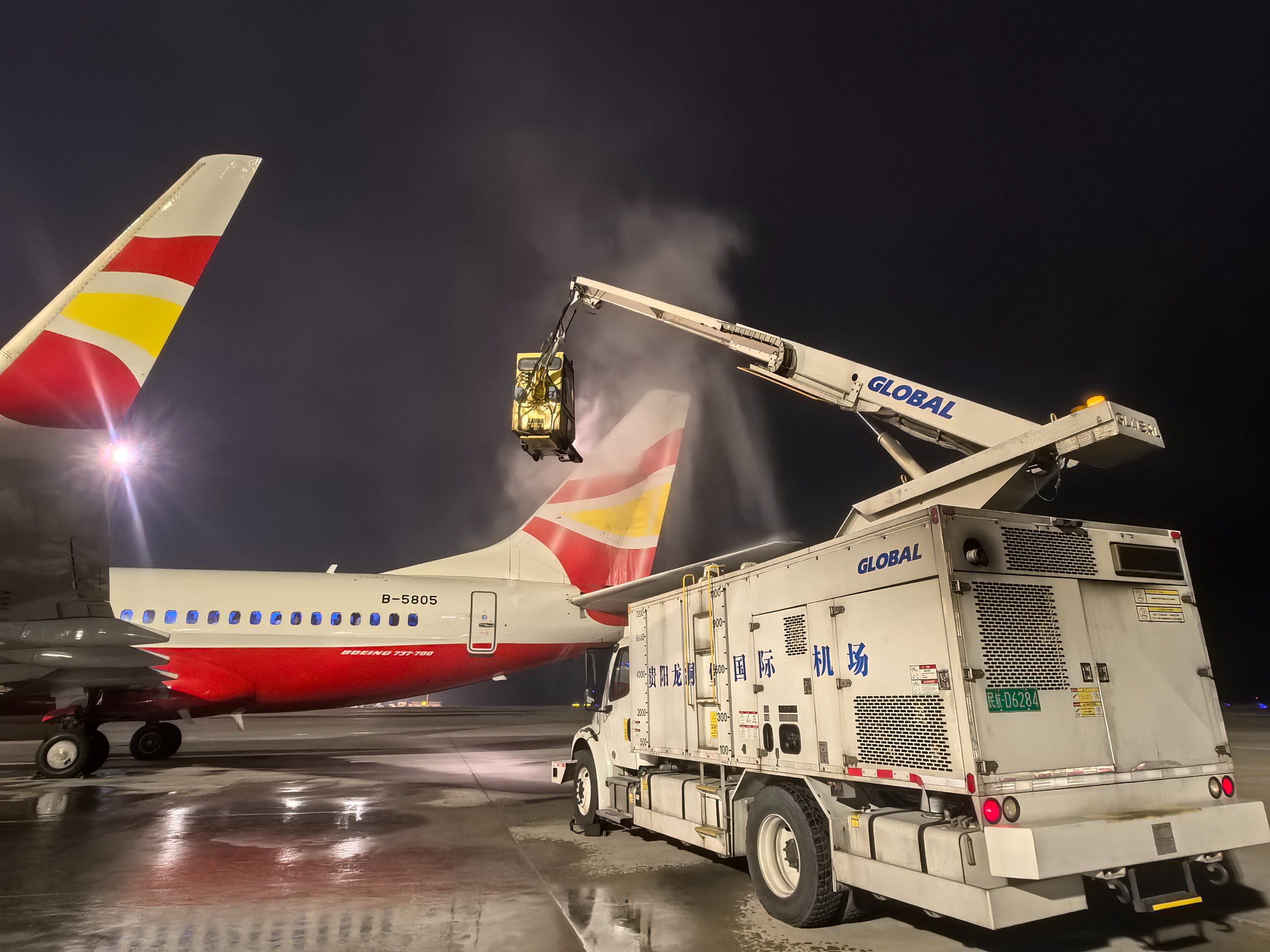 前置储备,全方位检修设施设备。检修调试航空器除冰车、道面除冰车辆及除冰液加注站,升级改造除冰液库房,确保设施设备性能稳定;储备航空器除冰液、道面除冰液、除雪剂等除冰雪物资450余吨,检测并补给急救物资100余件,采购百余件一线员工防寒物资,为应对凝冻天气提供充足物资支撑。