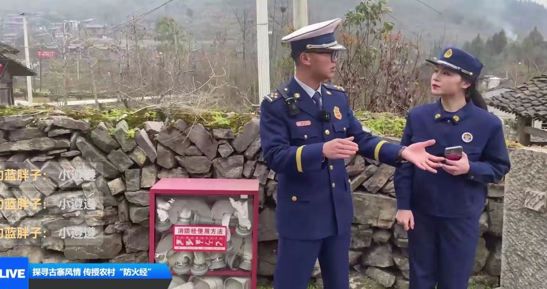 2月底的贵州,乍暖还寒,农村用火用电正值高峰,为加强群众消防安全意识,近日,遵义市消防救援支队的“蓝朋友”们走进务川仡佬族苗族自治县大坪镇仡佬龙潭古寨开展消防安全网络直播活动,带领广大网友一起探寻古寨风情,传授农村“防火经”。这是一场“仡佬民俗文化+消防知识科普”的直播。