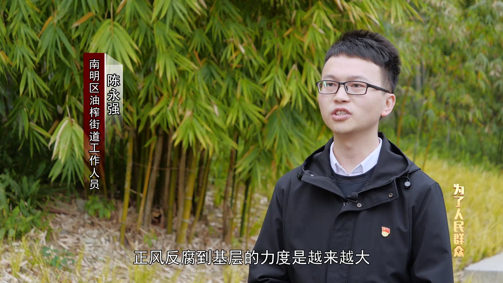 南明区油榨街道工作人员 陈永强:这些年,正风反腐到基层的力度是越来越大,我们的责任更重了,自我要求也更严了。看到群众身上的收获和笑脸,就觉得一切付出都是值得的,感受到自己既是良好政治生态的建设者,也是受益者。