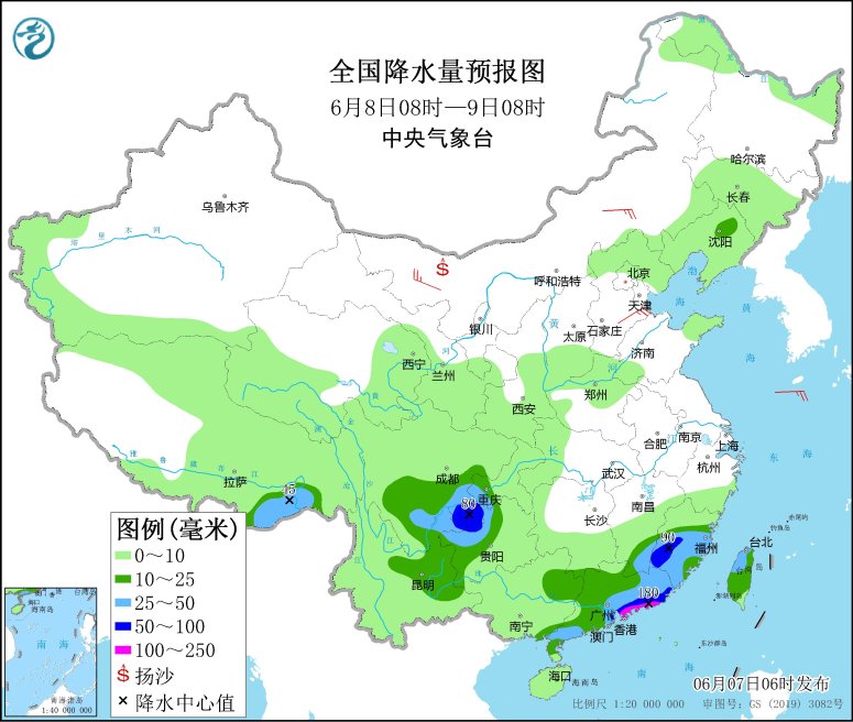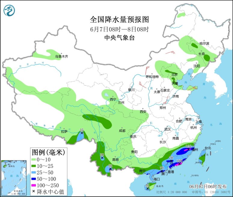 具体来看,根据中央气象台预报,今天,江西南部、广西东南部、广东大部、福建中南部、台湾岛、海南岛以及云南西部等地有大到暴雨,其中,广东东部沿海、福建中部等地部分地区有大暴雨(100~180毫米)。