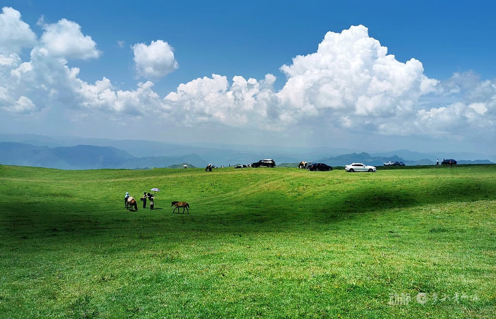 当人们驱车在起伏的山路中盘旋而上,穿过缭绕的云雾,眼前豁然开朗,只见一片广袤的草甸铺展在山脊之上。