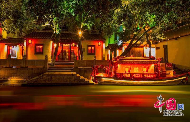 张厅夜囍结红彩。元宵佳节,从水上看一场融入千年文化的水乡传统婚典,在夜色之中见证江南的美好。