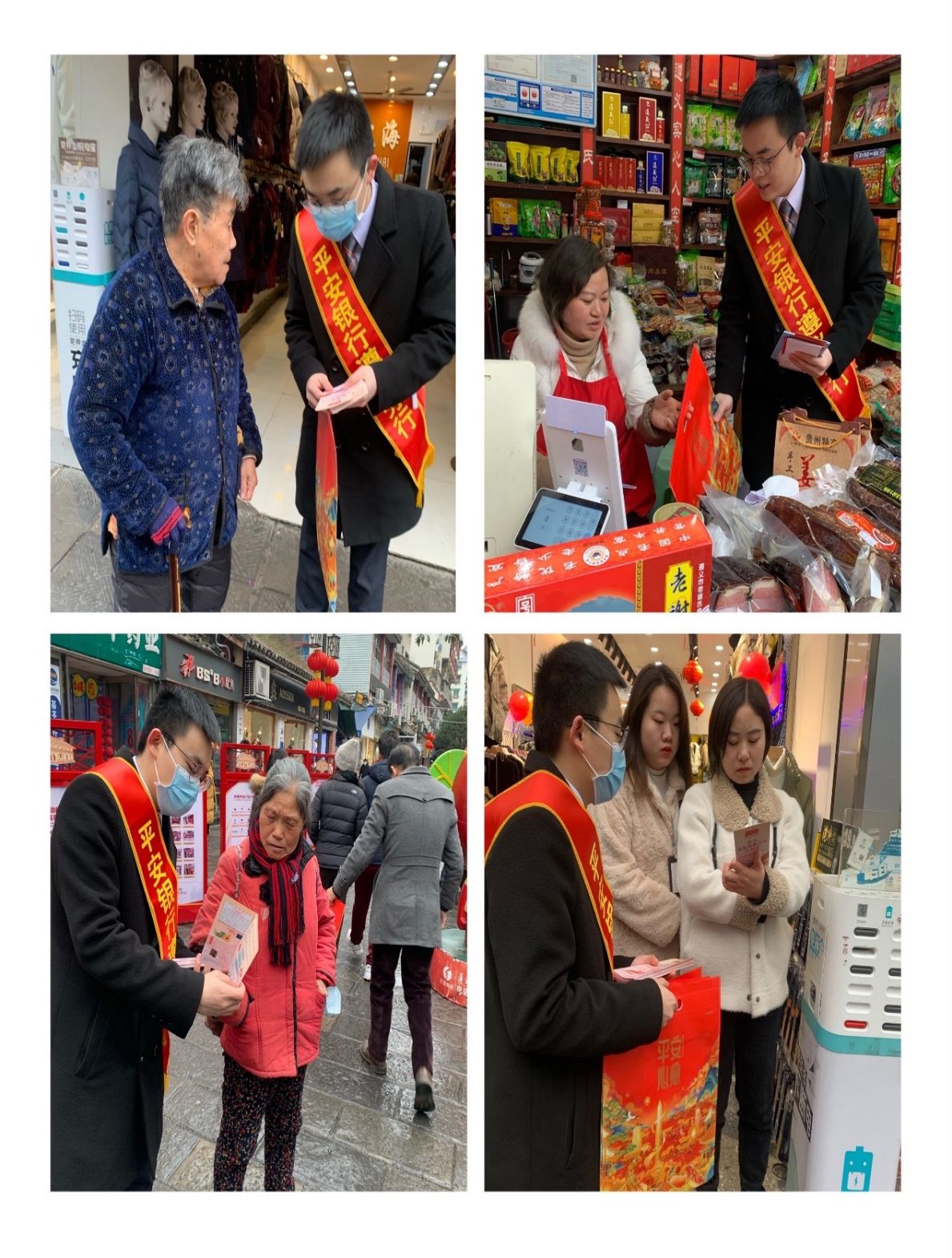 为向公众普及金融知识,提升金融安全防范意识,平安银行遵义分行在遵义老城的红军街、步行街开展了“金融知识进万家”迎新春宣传活动。