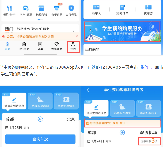 学生票预约购票服务怎么用
