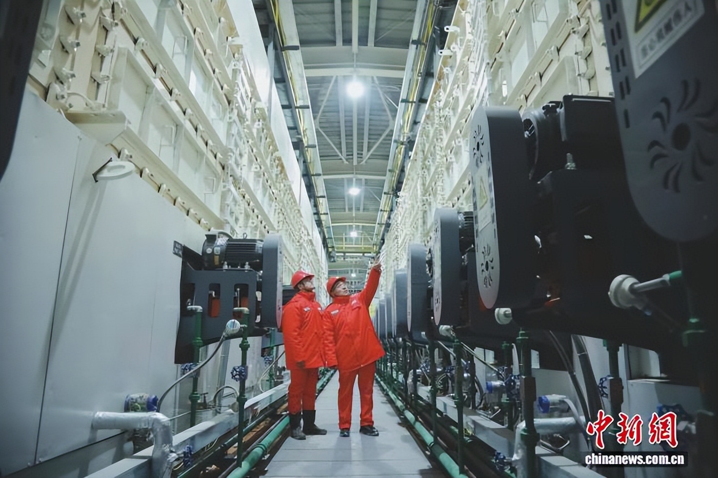 员工对110kV固体蓄热式电注汽锅炉蒸发段换热器进行巡检。陈琳 摄
