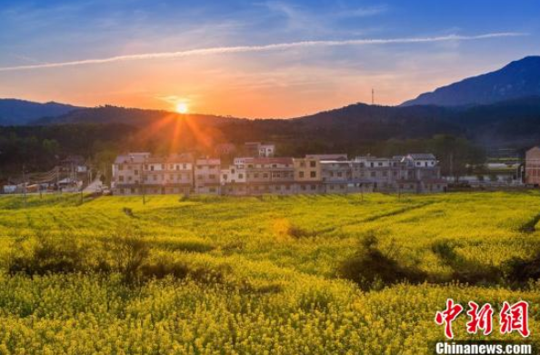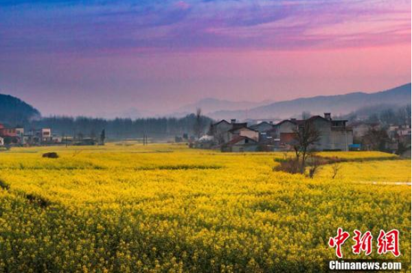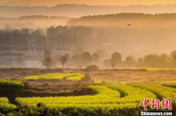 油菜花开乡村如画。