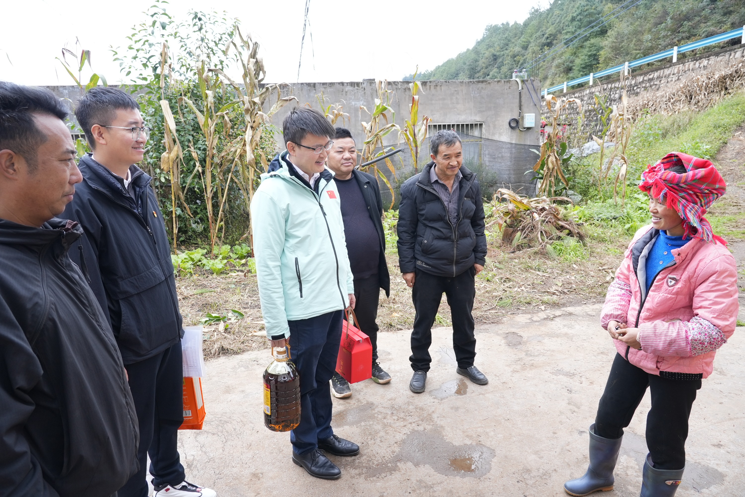 在营红村,广东省中医院贵州医院胡艳梅书记、石永勇院长一行在哲觉镇党委副书记、镇长杨少飞以及村干部的陪同下,走访慰问营红村13户家庭困难群众,为每户送去大米、食用油、零食礼包等生活物资及慰问金,并与他们拉家常、问冷暖、听诉求,鼓励他们在党和政府的关怀帮助下,坚强面对困难、树立生活信心,实现自立自强,把日子越过越好。