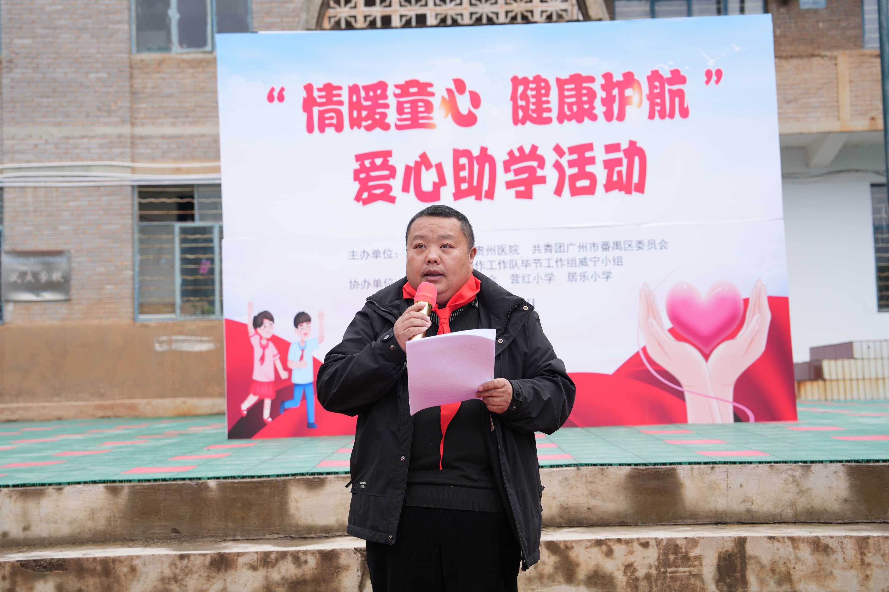 2025年11月4日上午,威宁县哲觉镇营红小学操场上暖意融融,“情暖童心 健康启航”爱心助学活动在此举行。本次活动由广东省中医院贵州医院、共青团广州市番禺区委员会、广东省粤黔协作工作队毕节工作组威宁小组联合主办,营红村村民委员会、营红小学、居乐小学共同承办。广东省中医院贵州医院党委书记胡艳梅,党委副书记、院长石永勇出席活动,威宁自治县教育局督学、哲觉镇人民政府相关负责人,以及广东省中医院贵州医院派驻专家代表、相关职能负责人、医护人员代表,营红小学、居乐小学师生共200余人参加。活动由广东省中医院贵州医院派驻营红村第一书记殷少文主持。