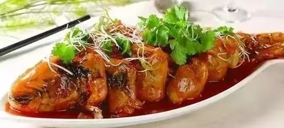 糟辣脆皮鱼是贵州的传统名菜之一,属于黔菜的经典名菜。糟辣脆皮鱼做法也不复杂,选用1.5斤左右的鱼,处理干净打上花刀,然后挂上浆,放入油锅炸酥炸脆,有点像糖醋鲤鱼的做法。最重要的一步,用贵州糟辣椒炒香,加入鸡汤调味勾芡汁,最后淋在鱼身上就完成了,成菜后油亮色红,味道酸甜咸辣,鲜香可口。