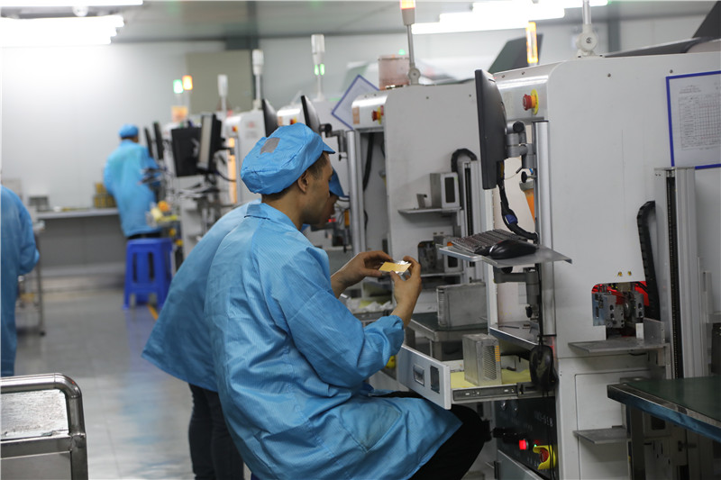 贵州联尚科技有限公司生产车间,各条芯片生产线高速运转,工人们有条不紊地忙碌着 (马玲玉 摄)
