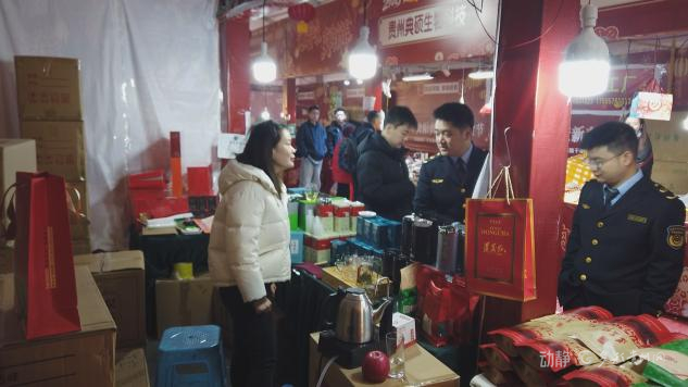 在贵阳市筑城广场,工作人员走进年货市集,重点对群众消费量大、关注度高的食品类年货开展检查。贵阳市南明区市场监管局兴关路分局局长丁震告诉动静记者,检查重点为商家的经营资质,如营业执照和食品经营许可证等,同时也会对货物来源渠道以及计量器具开展监督检查。本次检查将联合贵州省检测中心进行采样,对食用农产品的农残以及其他一些技术性指标开展抽检,让群众买得放心。