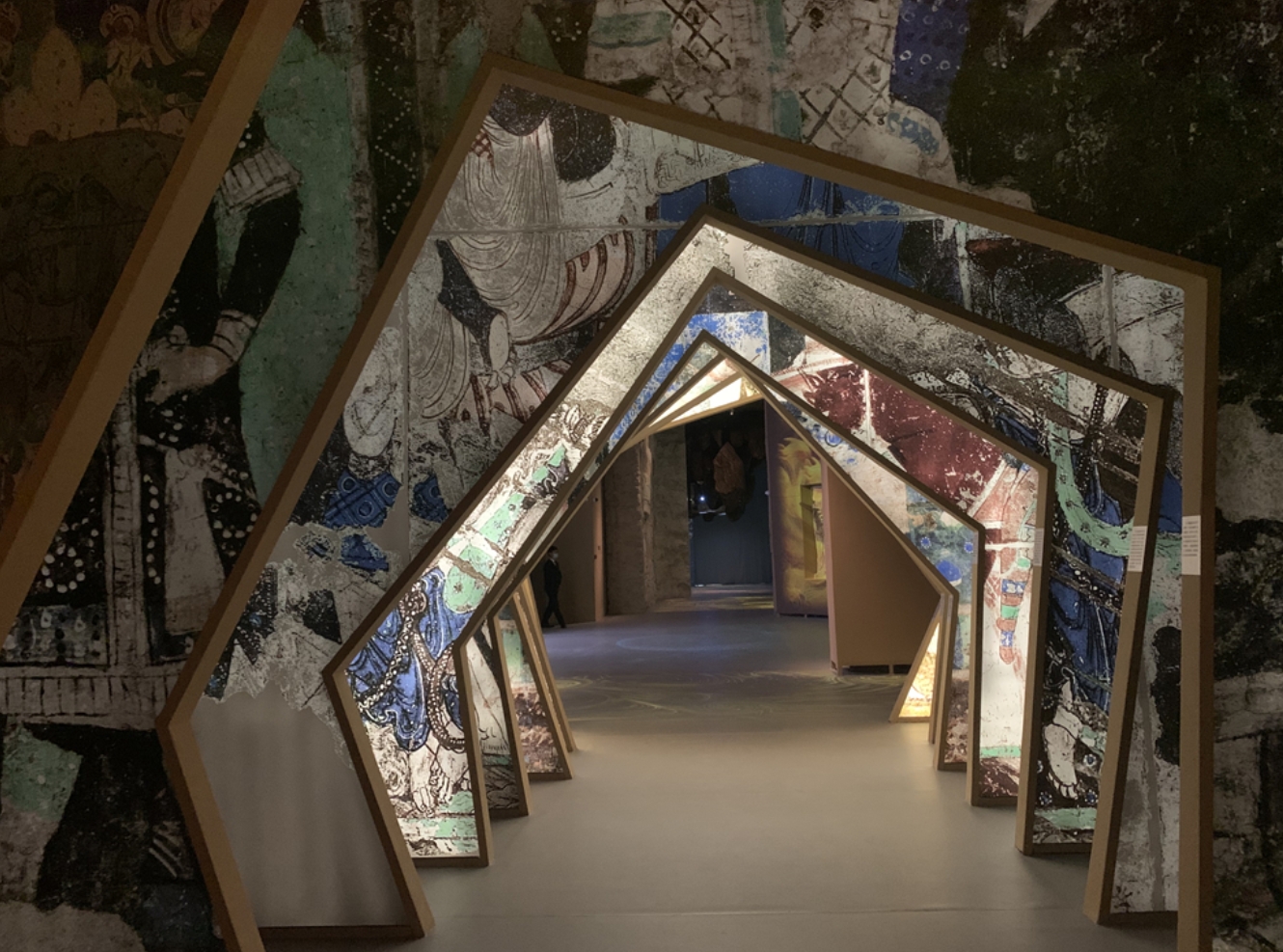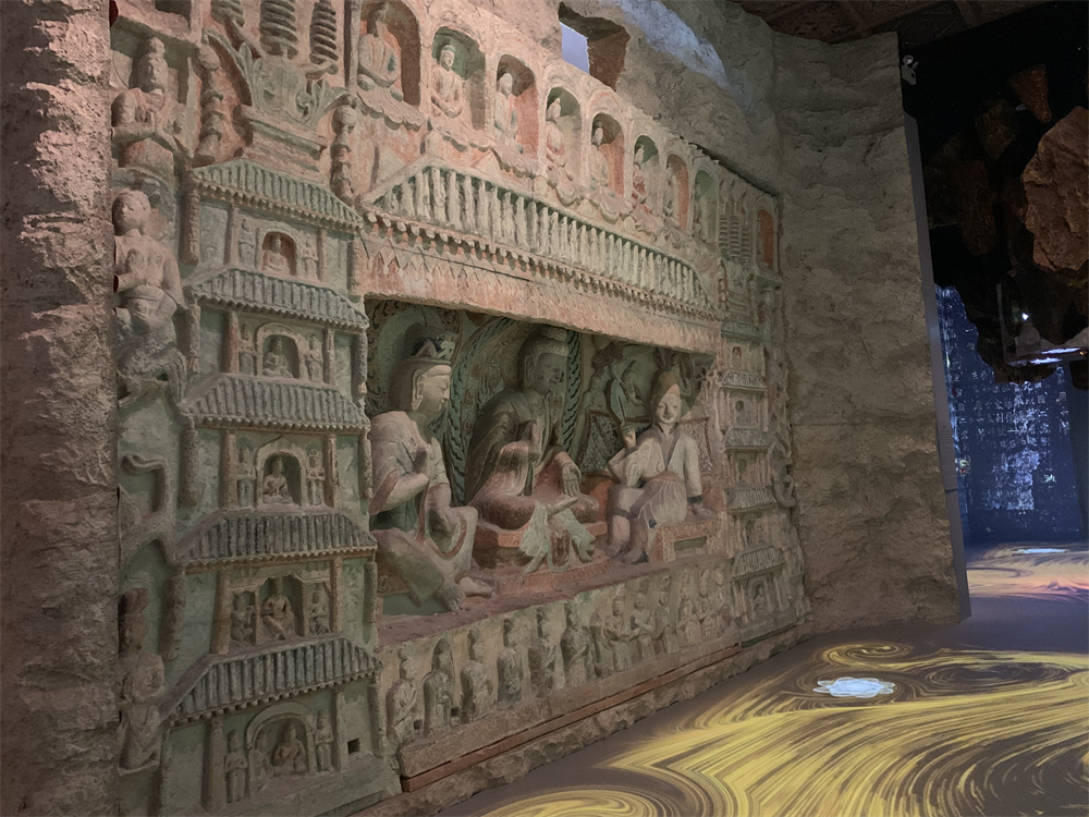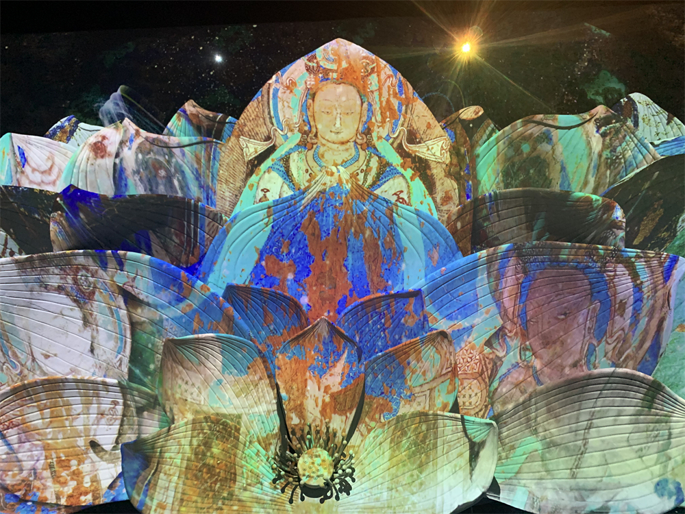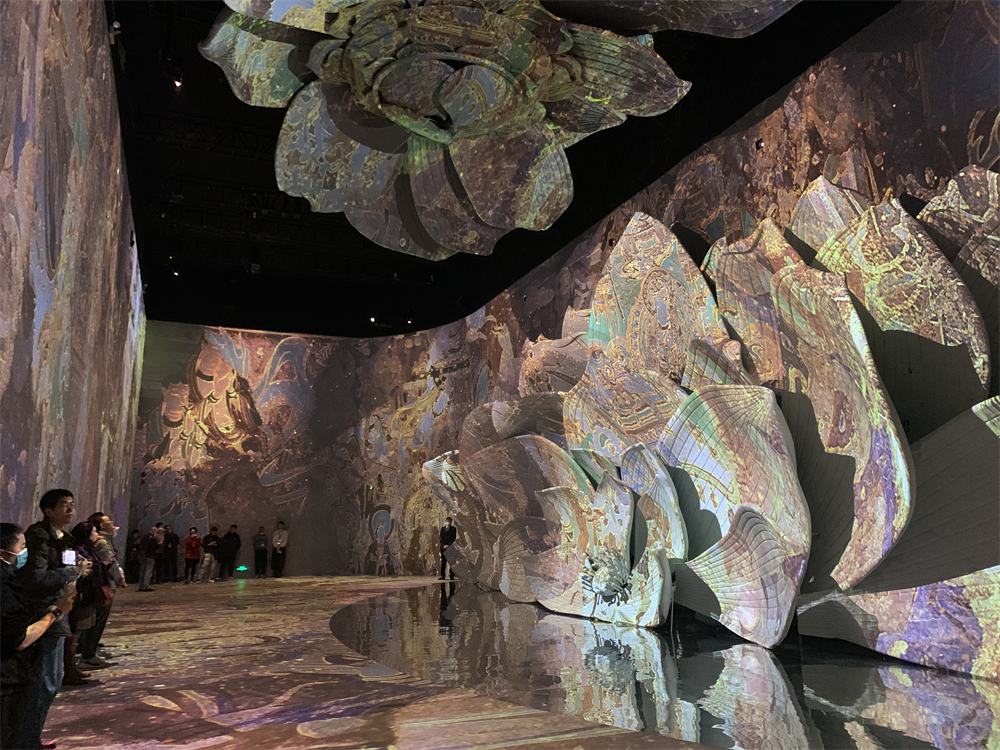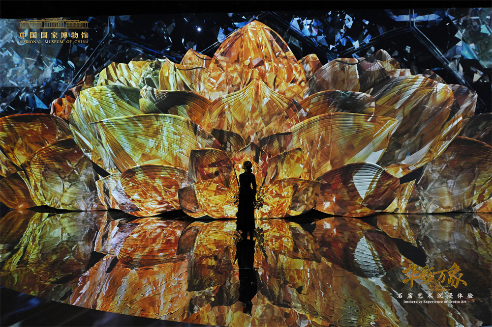 石窟寺是我国古代文化遗产的重要组成部分,是中华文明历史长河中的璀璨明珠,具有独特的历史价值、艺术价值和科学价值。12月9日,“华彩万象--石窟艺术沉浸体验”在中国国家博物馆对公众开放。石窟艺术是中国古代灿烂文明的独特形态之一,反映了本土艺术与外来艺术融合创新的复杂历程,折射出艺术审美与风俗变迁的诸多细节,展现了跨越时代和地理空间的多元性、开放性和包容性,成为中外文明交流互鉴的重要历史见证。本次沉浸体验是石窟艺术活化的具体举措,打开了石窟艺术全新的解析和观赏视角,也在技术和感知层面突破了传统不可移动文物展示的基础模式。据介绍,本次沉浸体验展陈空间约1500平方米,首次以盛开的莲花作为造型主体设计成巨型数字装置,艺术家们结合数字绘制、数字3DMapping影像和AI算法技术,以当代眼光和独特视角来表现、挖掘和阐释克孜尔石窟、敦煌莫高窟、麦积山石窟、云冈石窟和龙门石窟的艺术风格与丰富内涵。 巨型数字装置和全感官互动式观展是本次体验的最大亮点。诸多石窟艺术场景经过当代美学概念的提炼和催化,或庄严神圣、或瑰丽曼妙,在此一起跨越时空、汇聚一堂,这些极富想象力的数字化艺术再创作,传递出中国古代石窟艺术所承载的审美追求、价值理念和文化精神,让文化遗产基于原有创作续接新的艺术语言,在时代变革中焕发新的蓬勃生命力。