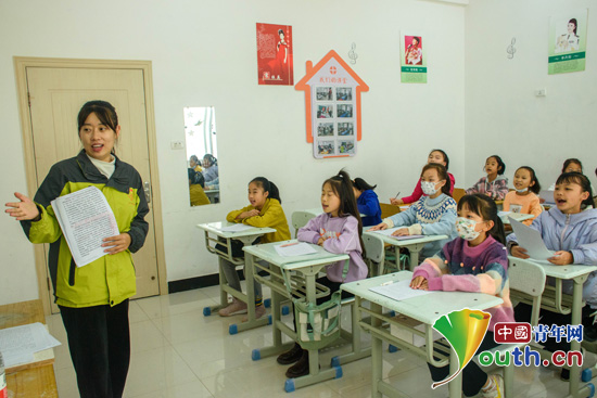 志愿者在“艺语”播音主持课堂进行授课。中国青年网通讯员 薛嘉瑞 供图