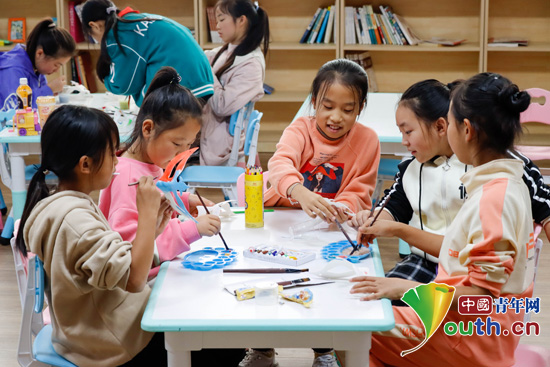 孩子们在“艺彩”绘画课堂进行绘画创作。中国青年网通讯员 张聪逸 供图