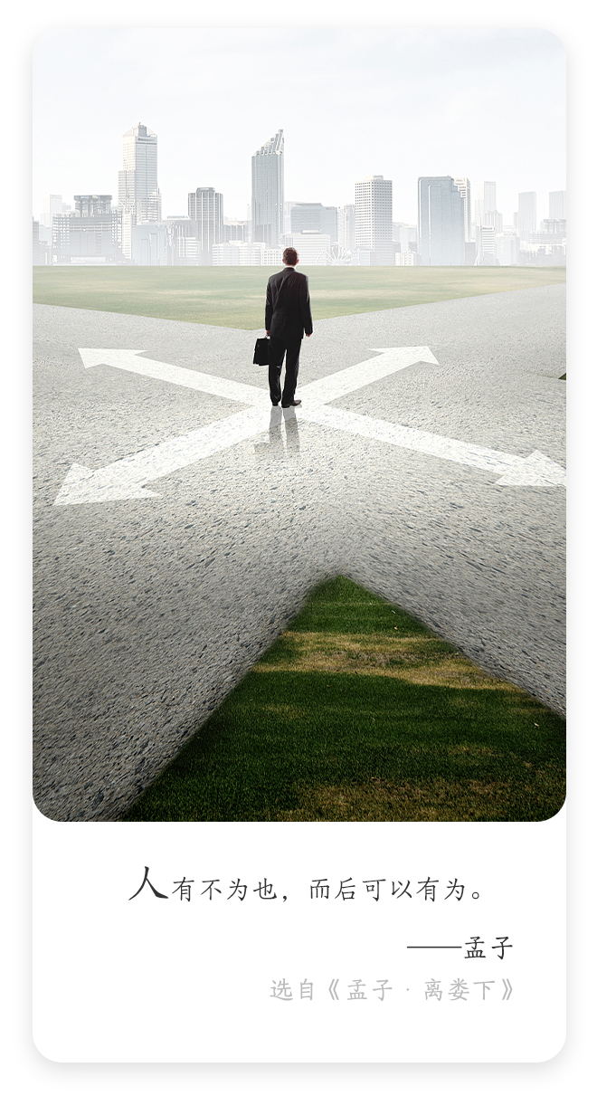孟子,战国时期哲学家、思想家、教育家,儒家学派代表人物。此句意思为,人先要舍弃某些事物或不做某些事情,然后才能够有所作为。