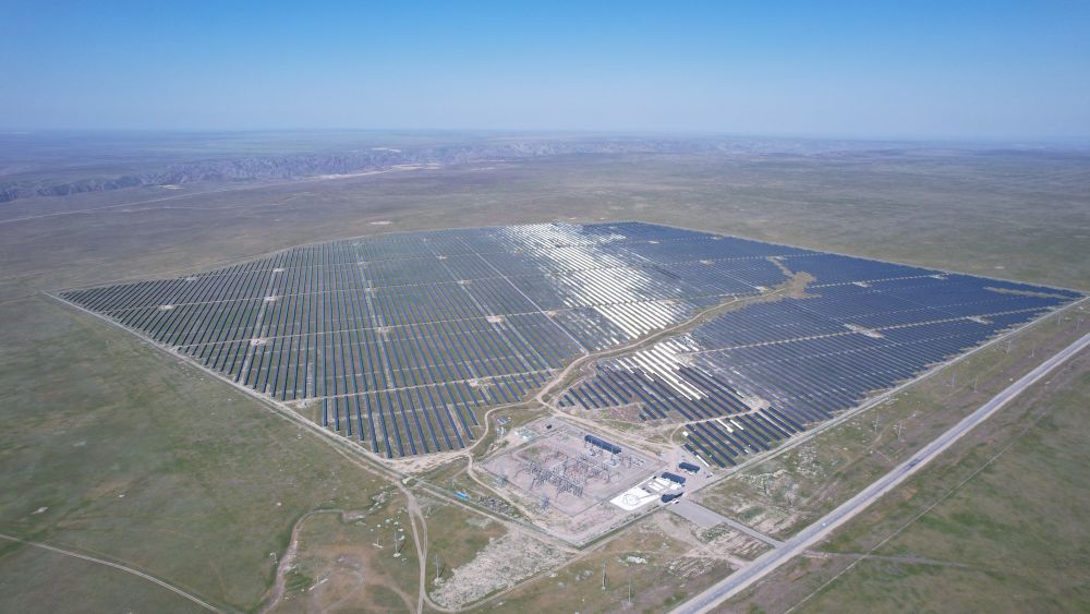 这是哈萨克斯坦阿拉木图州的卡普恰盖100兆瓦光伏电站。