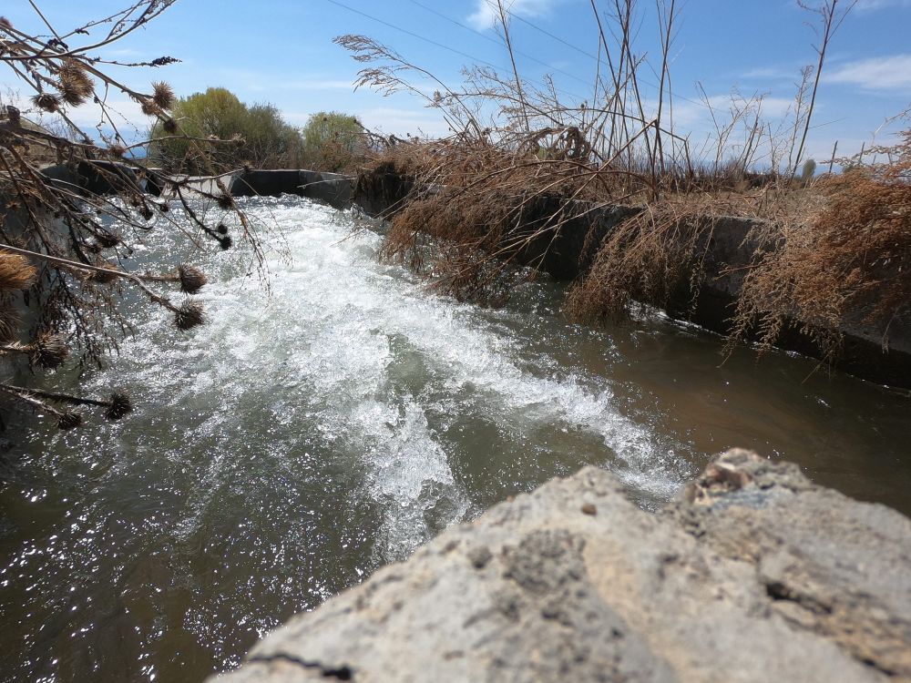 这是吉尔吉斯斯坦卡拉奥伊村经中国援建灌溉工程改造后的水渠。
