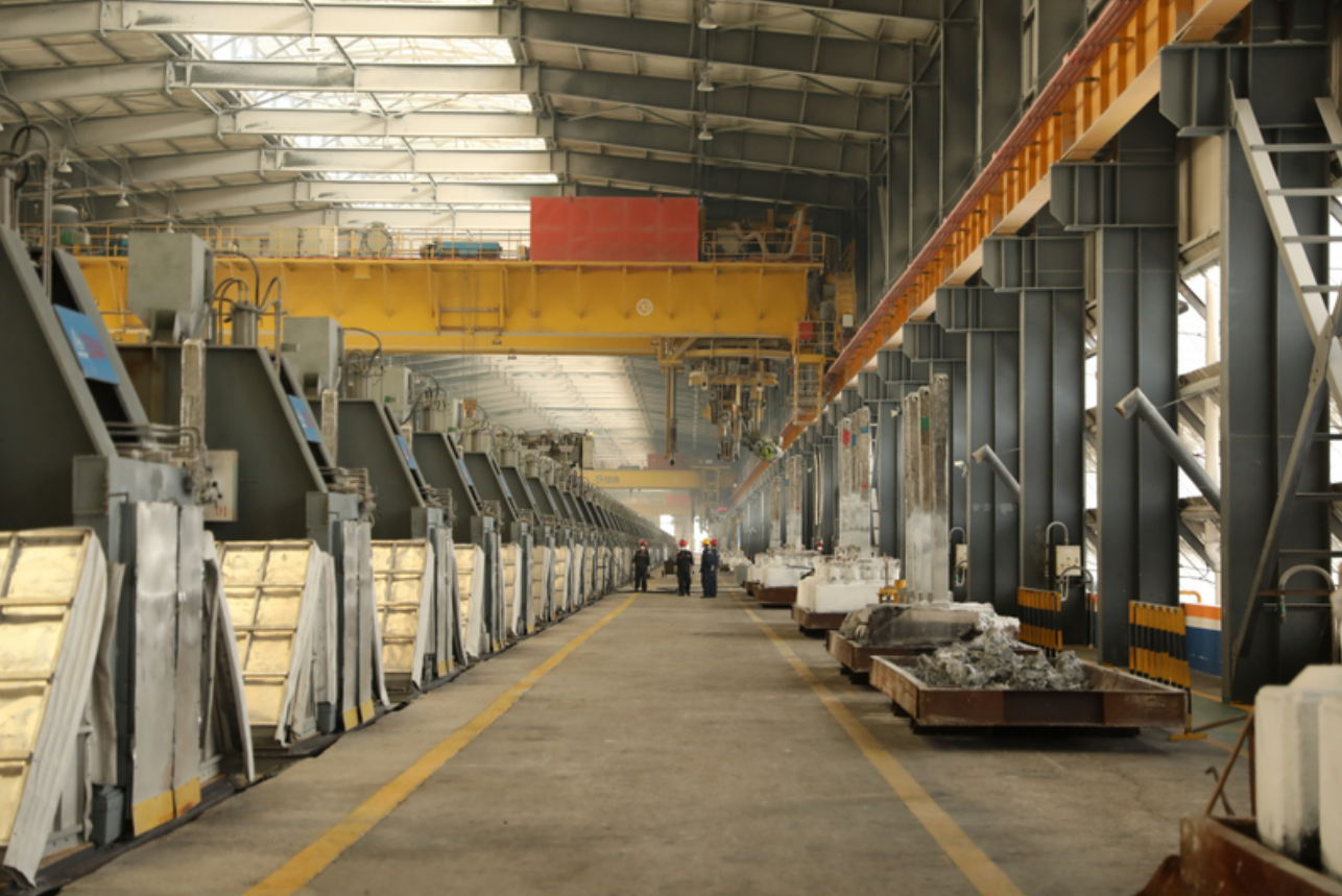 遵义铝业股份有限公司电解铝厂内的电解槽正在生产铝液 蔡城池 摄