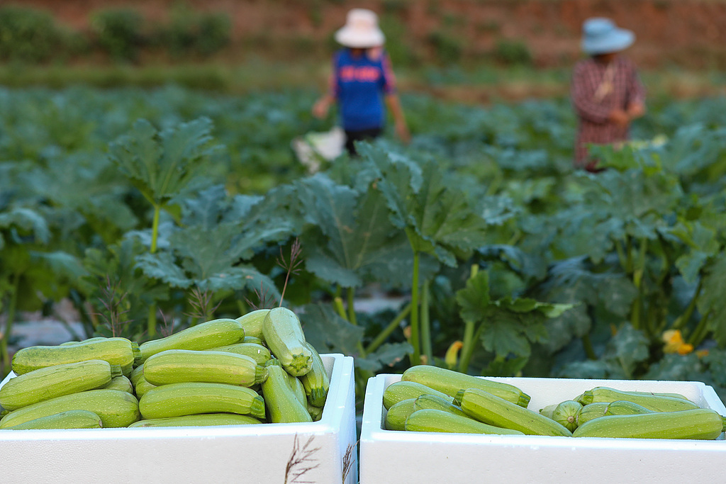 罗甸县茂井镇高里村秋冬蔬菜种植基地的百余亩西葫芦丰收 瞿宏伦摄