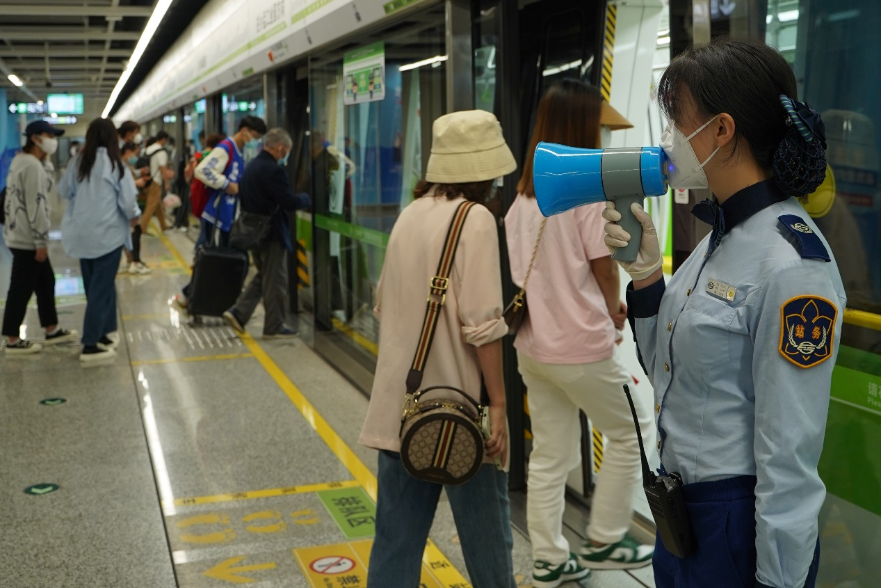 在1、2号线各站点增设出入口及站内巡视岗,提升节假日期间车站、列车巡查力度,强化信息报送及应急联动机制,严格按照“逢进必检、逢疑必查、逢险必处”的原则进行安全检查,切实保障乘客出行环境安全。
