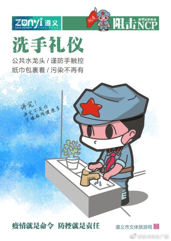 据介绍,遵义市文体旅游局设计推出新侠义防“毒”秘笈后,文体旅游系统和文体旅行业通过微信转发、制作宣传展板和宣传海报等多种方式,广泛用于机关、学校、社区、旅游企业经营场所抗“疫”宣传,“小红军”的主角“萌”态十足、阳光可爱,成为抗“疫”宣传战线的“新宠”。此次发布的防疫工作礼仪海报 ,继续沿用“萌小兵”的主角形象,运用简洁上口的表达方式,让“萌小兵”帮助大家将战“疫”要点熟记在心,在充分保护好自己的同时,确保业务工作有序开展。