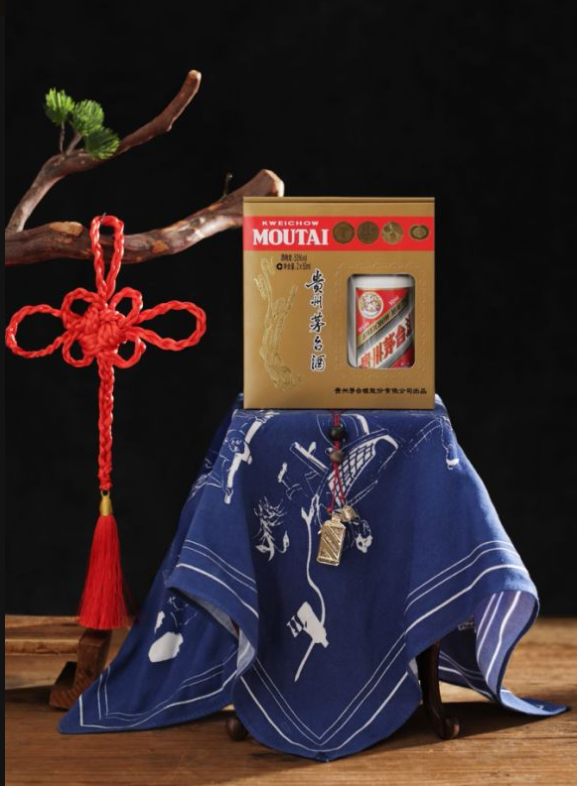 在包裹礼盒的蜡染方巾上,「惠群贵礼」,以贵州苗族蜡染文创方巾为包裹,串着贵州梵净山独有的紫袍玉带石珠、苗银鱼铃铛以及迷你茅台小酒瓶挂饰的红绳巧妙地系于礼盒之上,寓意着吉祥如意、年年有余,既增添了礼盒的趣味性,又彰显了贵州的艺术美学。