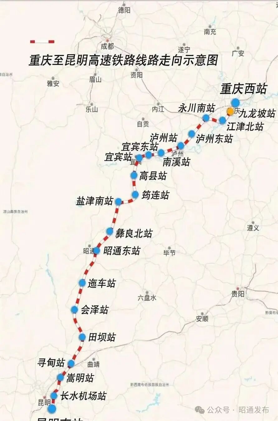 渝昆高速铁路是国家中长期铁路网规划“八纵八横”高铁主通道京昆通道(北京-昆明)的重要组成部分,也是连接成渝城市群和滇中城市群的钢铁大动脉,为国家百项交通扶贫工程重点项目,起自重庆西站,经重庆市江津区、永川区,四川省泸州市、宜宾市,贵州省毕节市,云南省昭通市、曲靖市至昆明南站,与成自宜高速铁路衔接,构成成都至昆明高速铁路通道。