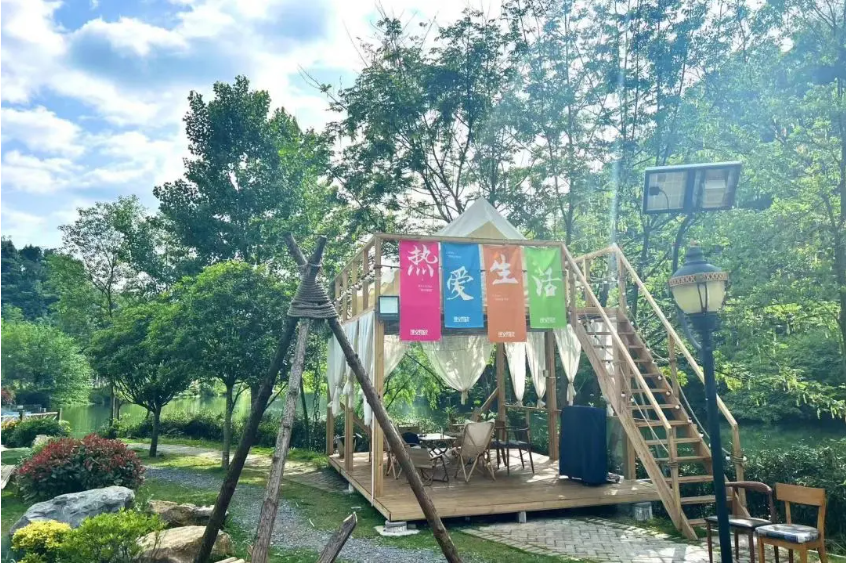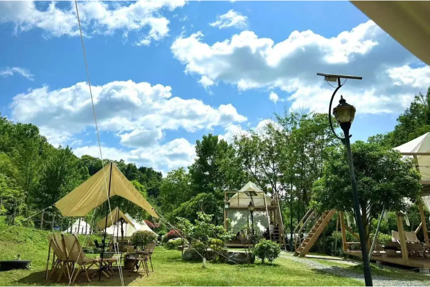 觅鸣溪谷露营基地位于三渡镇双河村,可同时容纳300-400人露营,有景观独栋别墅4栋、独栋民宿两套,景观标间15间,露营帐篷7顶,户外泳池一个。营地内篝火及露天电影、露天KTV、垂钓免费开放使用,每周末和节假日有民谣乐队表演、烟花秀及各类互动性游戏。逃离喧闹的城市,在这里感受山野自然的幽静。