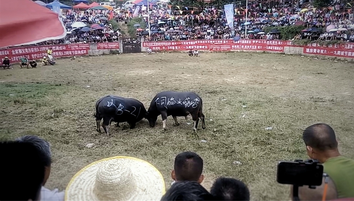 记忆中,每年初五初六开始,周边苗族村寨会轮流举办方言叫“看会”的活动,斗牛、斗鸡、芦笙会、篮球赛等,都是在“看会”期间举办。我妈妈是苗族,她有一套苗族盛装,去看会时就会穿上,参与一些活动。我爸爸和弟弟,喜欢去看斗牛,比较刺激。
