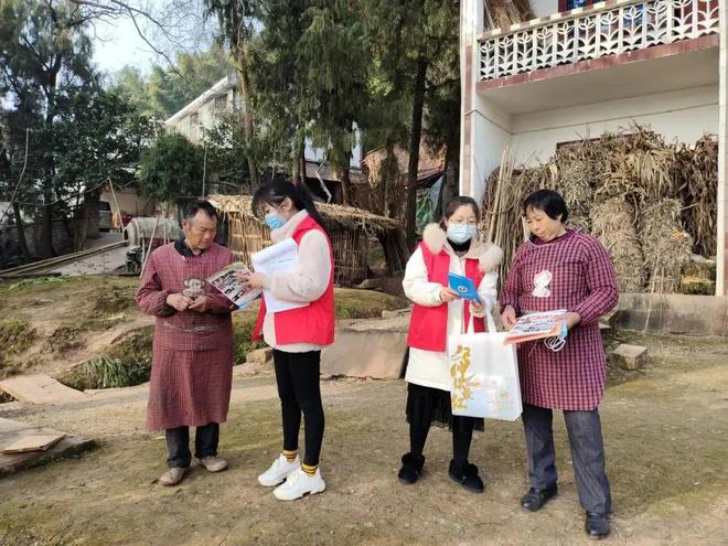 廖敏和志愿者伙伴在中天镇普照村入户开展禁毒宣传