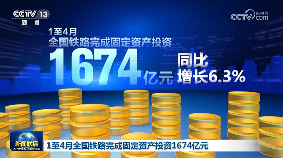 国铁集团近日发布的数据显示,1—4月,全国铁路完成固定资产投资1674亿元,同比增长6.3%。