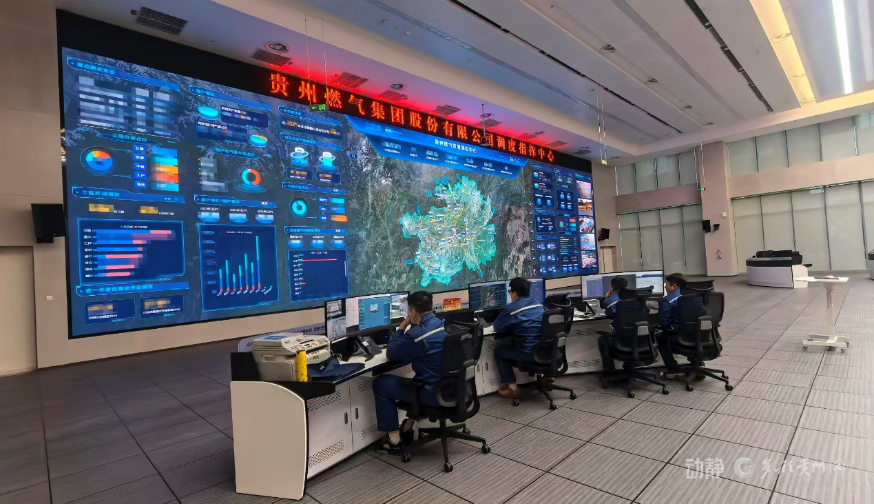 在贵州燃气集团调度指挥中心,工作人员通过智慧平台实时在线监测全省管道气源供应、管网运行、风险预警等信息。