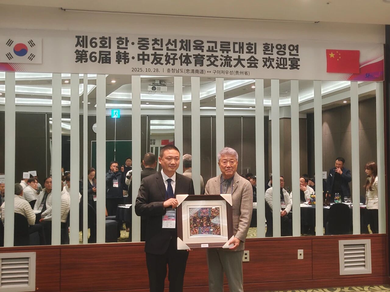 韩国忠清南道体育会金荣凡会长对贵州代表团的到来表示热烈欢迎。他指出,今年迎来第六届的体育交流大会,已成为连接中韩两国、连接忠清南道与贵州省的重要桥梁。他表示,历届交流活动不仅有效提升了选手们的竞技水平,还通过文化探访增进了对彼此历史和传统文化的理解,在相互交流的过程中传递着温馨情谊,发挥了体育活动促进中韩两国民间交流的重要作用。他衷心祝愿所有参与者在比赛中尽情发挥,并能在忠清南道美丽的西海岸留下更多珍贵而美好的回忆。