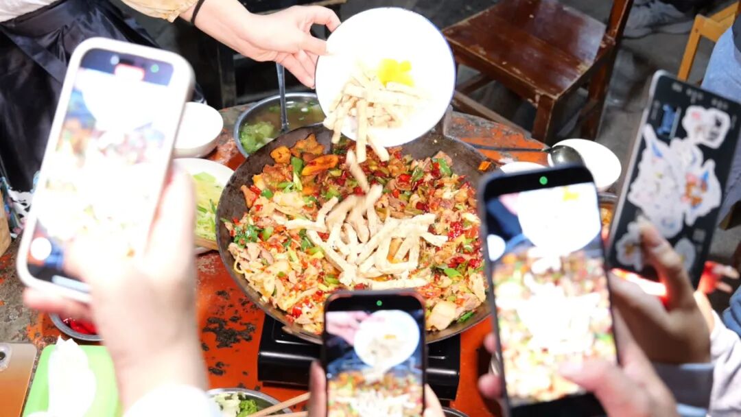 网红游客们纷纷打卡杀猪饭