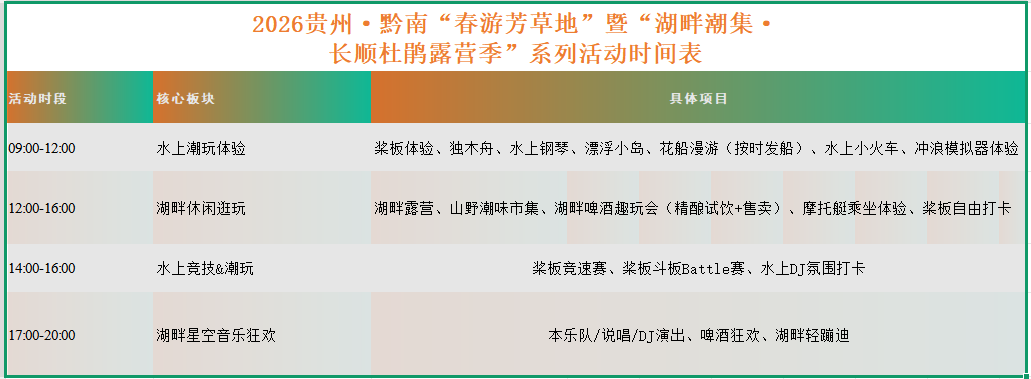 4月11日-12日,2026贵州・黔南“春游芳草地”暨“湖畔潮集・长顺杜鹃露营季”系列活动将超燃来袭。从早到晚,四大主题板块承包你的春日快乐,承包你对春天的所有想象!