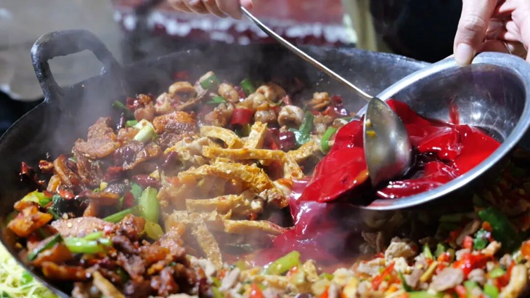山水养人,美食慰心。行程中,长顺特色杀猪饭成为网红达人们的“舌尖惊喜”。精选本地散养黑毛猪,经大火爆炒激发出浓郁鲜香,肉质脆嫩顺滑、肥而不腻;搭配新鲜猪血、特色豆腐干与季节素菜,一口热菜、一碗米饭,满是长顺烟火气的地道。