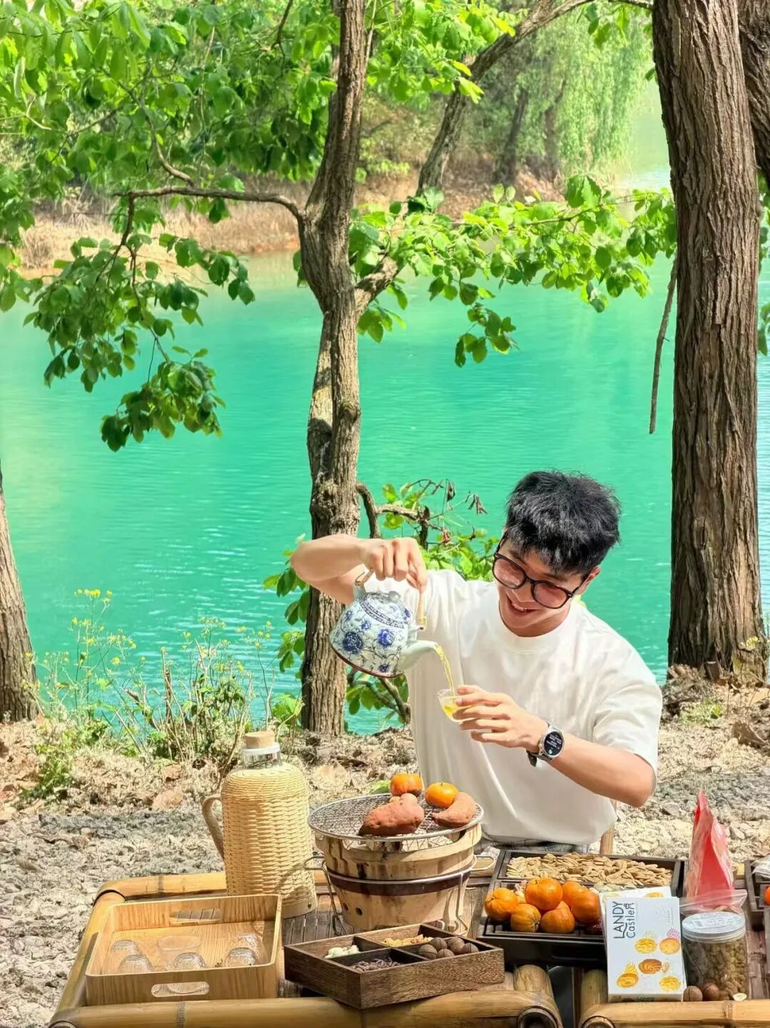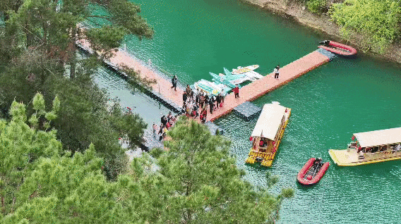 漫步湖畔,清风裹挟花香拂面;乘竹筏泛游,船桨轻摇掀起一片浪花,萌宠相伴、笑语连欢,定格人与自然相融的美好瞬间。