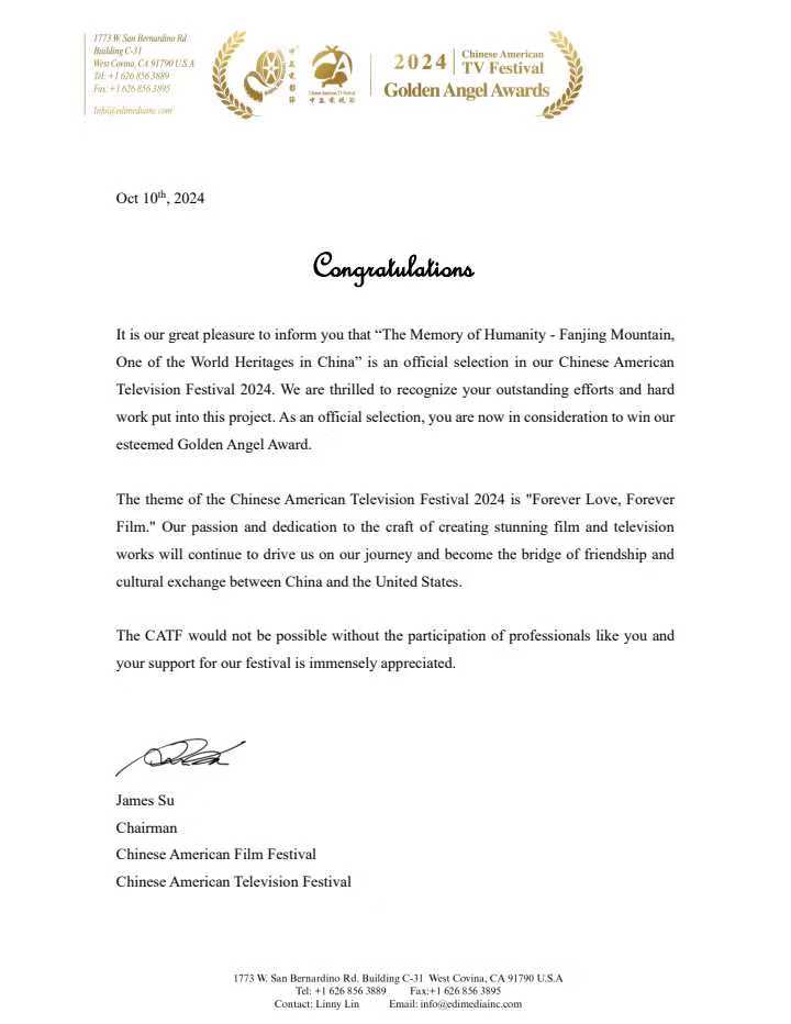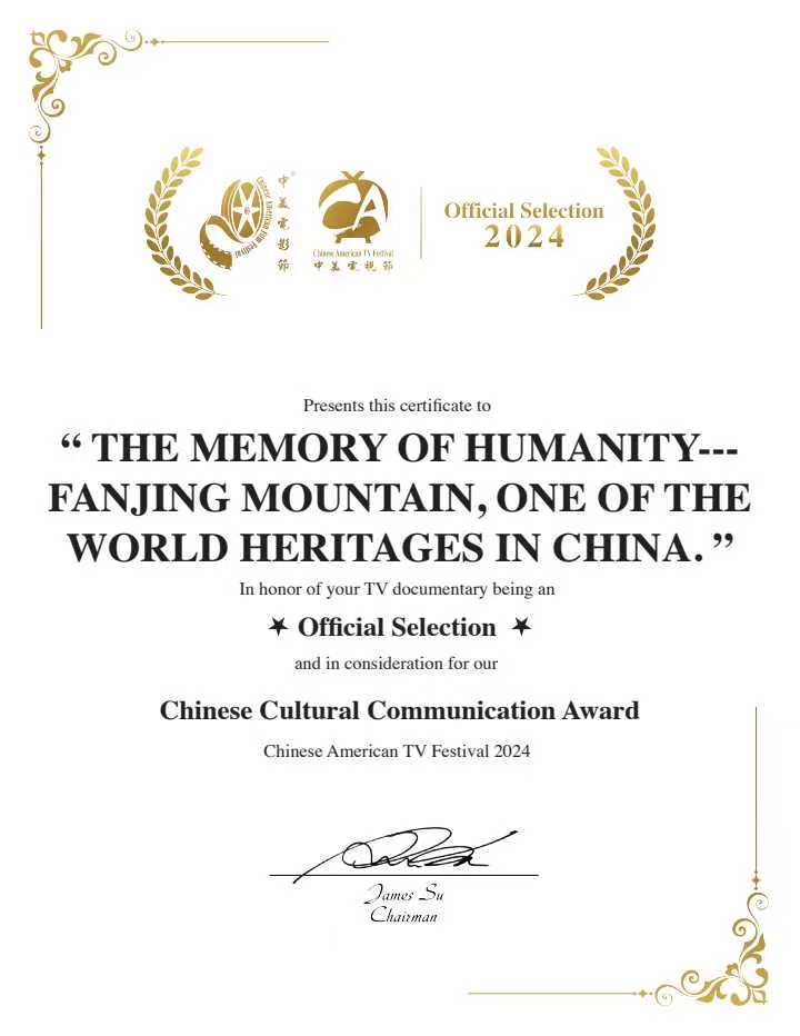 贵州台承制的《人类的记忆——中国的世界遗产梵净山》节目入围2024中美电影节、中美电视节“中华文化传播力奖”
