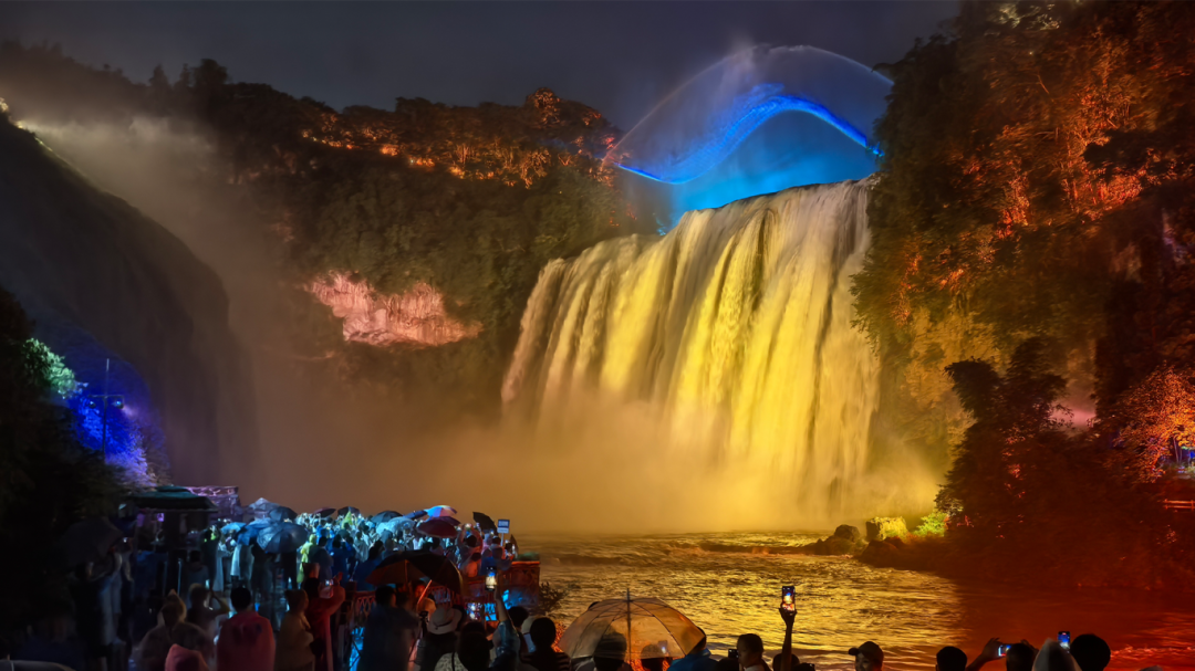 五一之夜,光影为笔、瀑布为卷