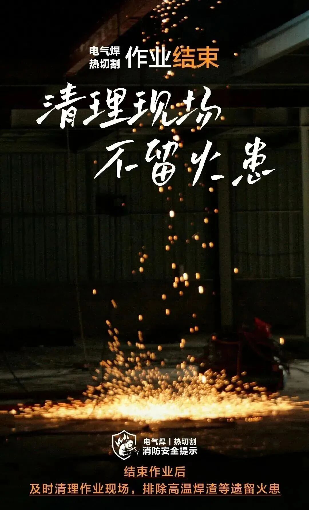飞溅的火星和残渣(温度可达2000-3000摄氏度)