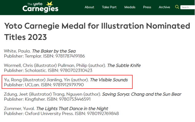 11月7日,2023年英国卡内基奖(Yoto Carnegie Medal)提名名单公布,华人插画家郁蓉凭借作品《寻找声音的女孩》入围卡内基奖插画奖,是该奖项自设立以来首位获得提名的华人插画家。